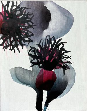 Kleinformate "Freiland" 16 x 12.6 cm, Öl oder Tusche auf Finpappe/Holz, Distanzholz 12mm und Aufhängung auf der Rückseite, Unikate.
